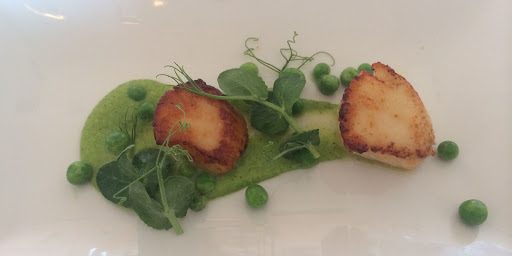 The next Melton’s sea food course of scallops was also superbly presented: two pan-fried examples nestling over pea puree. Comparing inevitably to last Sunday’s meal at the Star the scallops were a touch over cooked, lacking a final few percent of taste and moisture in their core, but still a satisfying course sliced through with pea flavour.