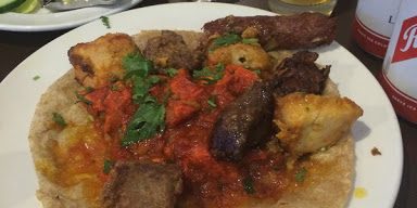 Taking the easy option to start with, we circumvented a decision with the Village Spice Special Mix for four. Consisting of chicken tikka, lamb tikka, seekh kebab and chicken chaat served on a light bread we thought we might have made a mistake and overestimated our appetites. Well-seasoned meat that was colourful without being suspiciously luminous and a well-judged heat boded well for the mains, if we would be able to stretch out stomachs around them.