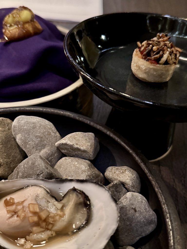 Sweet dishes were no less accomplished with yuzu and matcha represented across the brace of courses that also used meadowsweet for an aromatic accent somewhat reminiscent of marzipan. These striking dishes were a perfect exclamation point to end a very special meal that also came with thoughtful wine pairing; the plum sake with desserts working particularly well to elevate both elements. This meal was within the first two weeks of Tsuchi being open but there was no sign of a concept being bedded in or any early teething problems, just a quiet confidence in the dishes and the people serving them. The marriage of quality local produce to elements that represent the chef’s character can be a compelling one and it really is so here, with clever accents brought to the dishes and a polished front of house keeping things ticking along nicely.