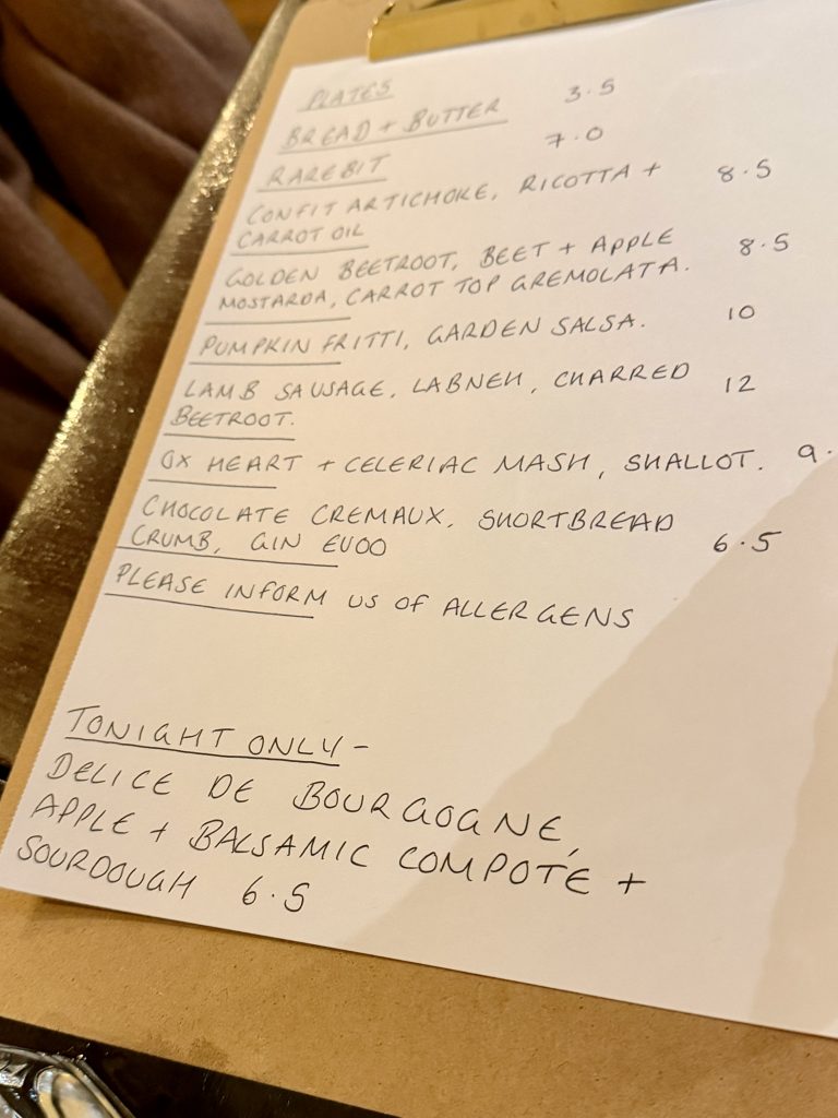 Beetroot is another favourite of mine but I tried to show restraint in the face of my vegetarian friend who didn’t share my recourse to the meat based dishes, with limited success. Simply presented with a zesty gremolata to help it live its best life, another tremendous showcase of one of my favourite vegetables. Meat dishes came next with lamb sausage coming accompanied by beetroot that, this time, had been given a touch of charring. The lamb was tender and well seasoned while benefitting from a generous spice too but my favourite plate matched one of my favourite vegetables to an unusual meat. Celeriac is a much more flexible vegetable than some give it credit for and presented as a mash here it made a superb backdrop for gamey chunks of ox heart with crispy shallots thrown in for good measure. All this food only attracted a debt of £45 which was superb value, the quantities certainly weren’t skimped on and we even had a few bits leftover to take home for snacking on. Wet is a great addition to a street which is hopefully on the up again now, the wine was memorable and clearly chosen with great care while the food represented superb value and some originality.
